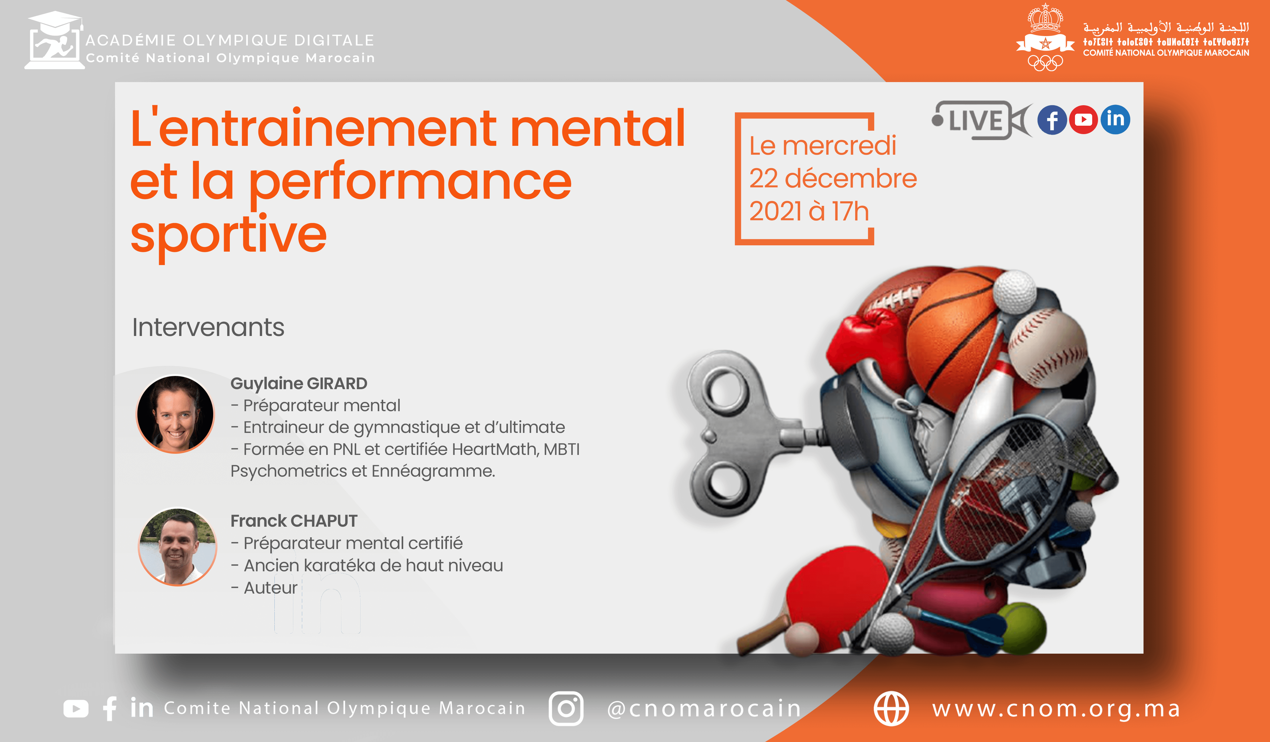 L'Académie Olympique Digitale Marocaine du CNO Marocain a organisé le mercredi 22 décembre 2021 à 17h, une visioconférence sur le thème : "L'entraînement mental et la performance sportive".